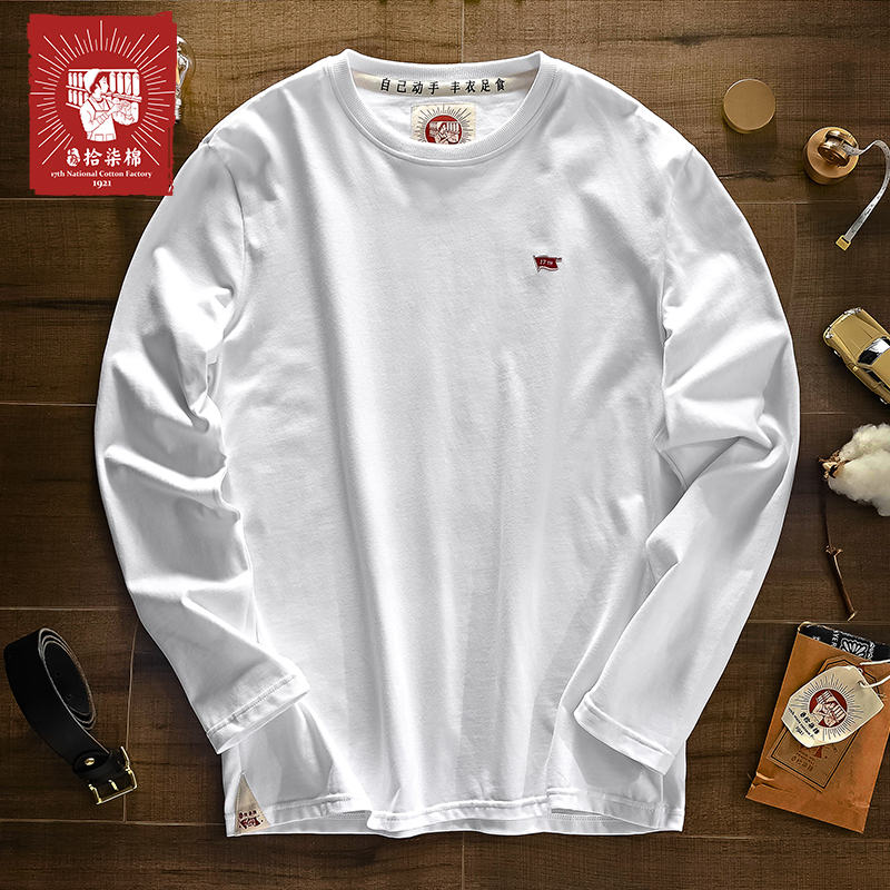上纺拾柒棉纯棉长袖T恤男新疆长绒棉花打底衫国棉超大码250斤6XL
