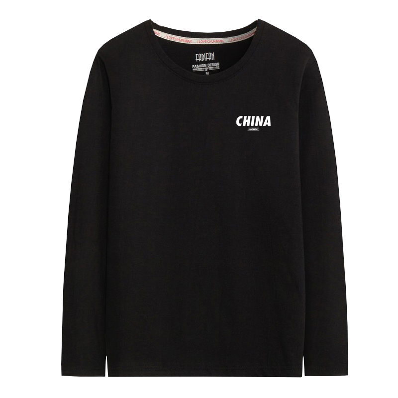 纯棉长袖t恤男圆领印花内搭体恤秋衣上衣男新疆长绒棉简约打底衫