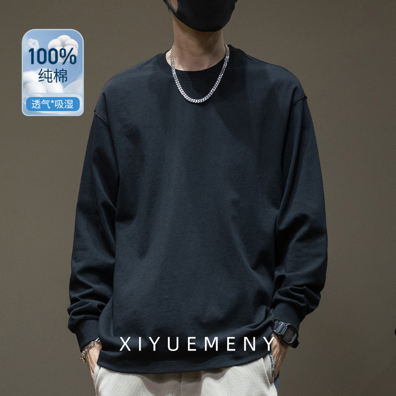 新疆长绒棉长袖T恤男士2025秋季新款宽松大码纯色内搭运动打底衫