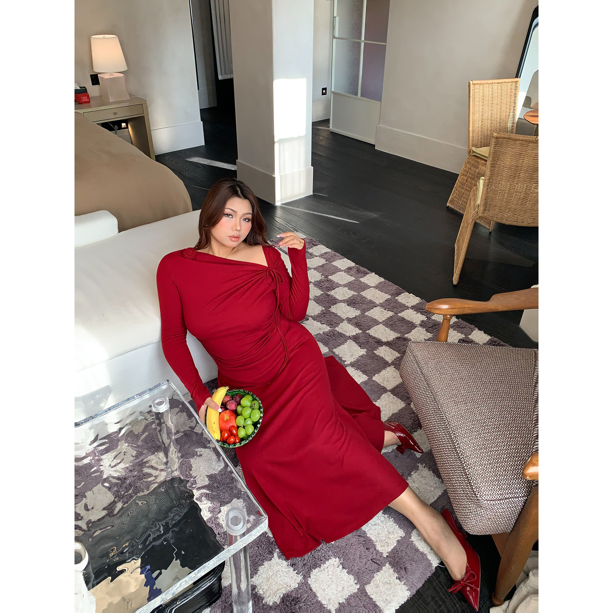 - 红色半身裙套装