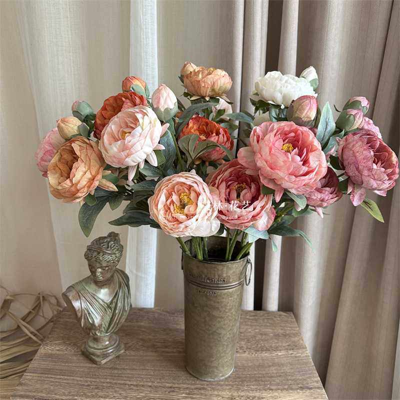 婚礼牡丹仿真花客厅摆设电视柜假花芍药插花绢花餐桌花艺法式摆件