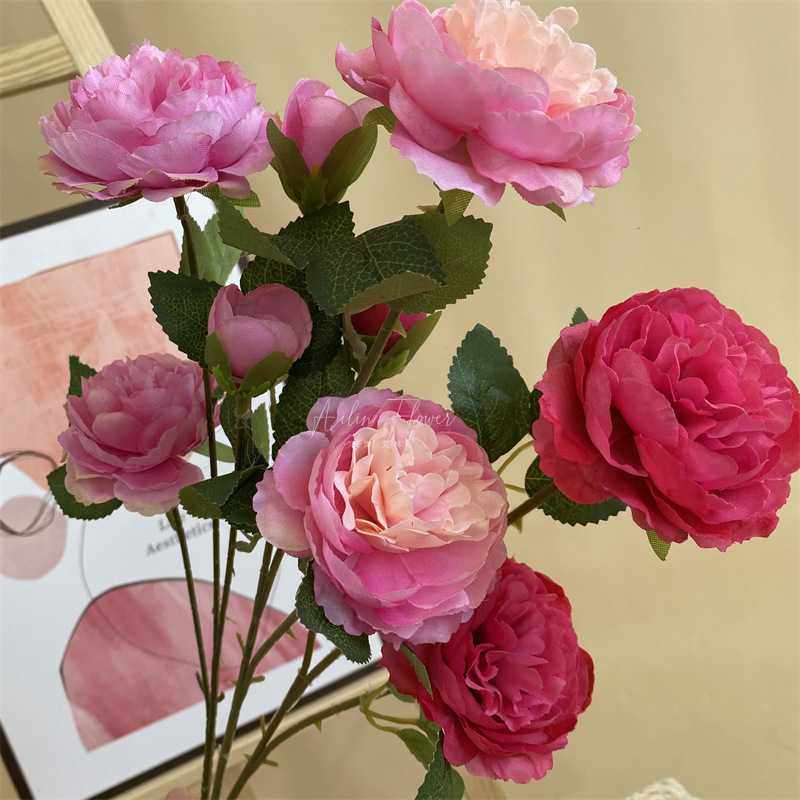 3头洋牡丹 仿真花 欧式居家婚庆装饰假花 三头洋牡丹厂家定制