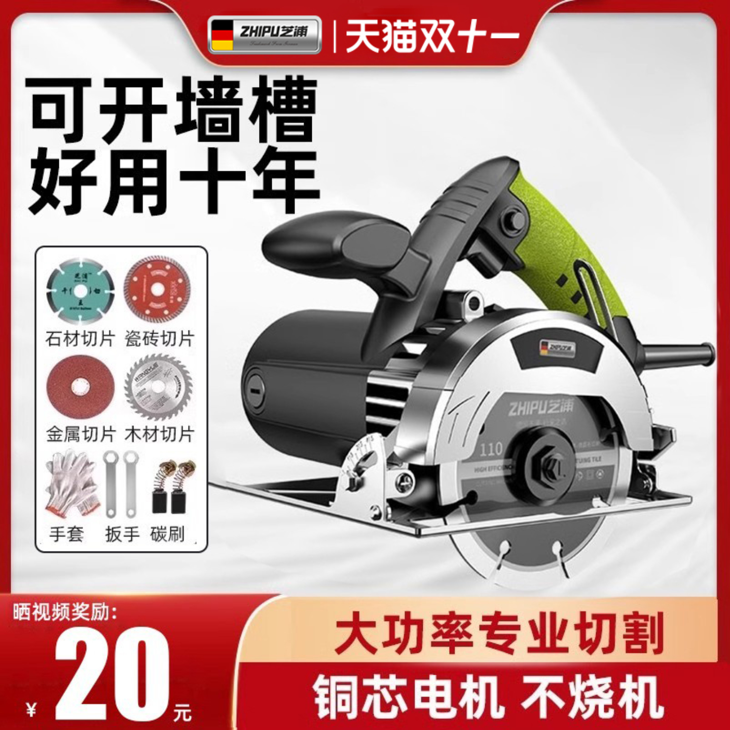 德国芝浦切割机家用小型木工专用手提瓷砖石材金属开槽云石机电锯