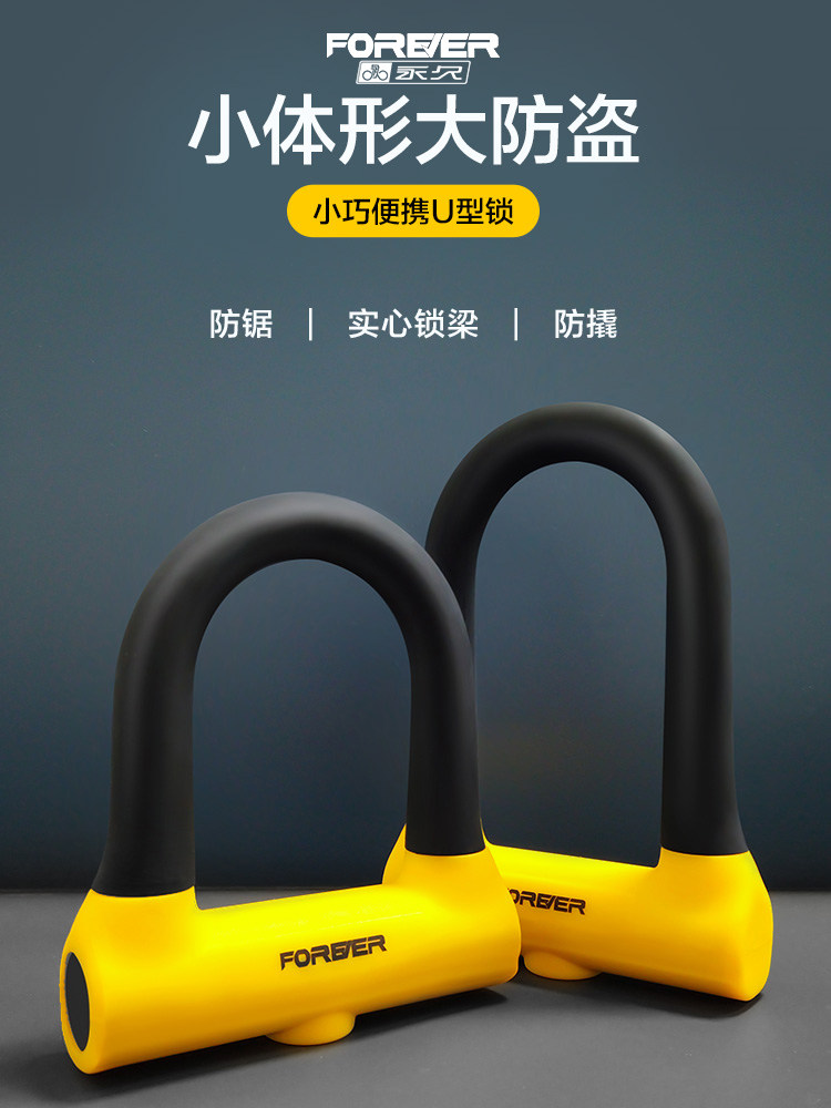 电动车锁防盗锁U型锁头电瓶摩托车锁防水便携山地自行车锁u形车锁