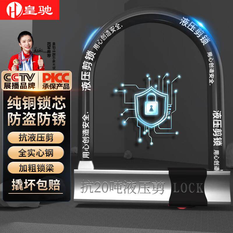 皇驰电动车锁防盗锁自行车摩托车U型锁抗液压剪防撬防盗锁纯铜锁