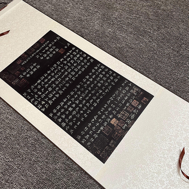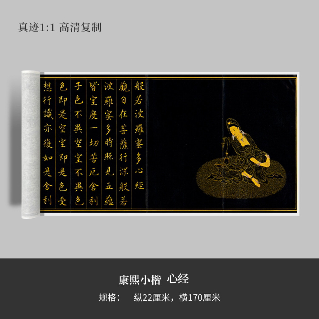 欧阳询欧体小楷心经复古书法字画敦煌拓本微喷复制绢本全凌横幅裱