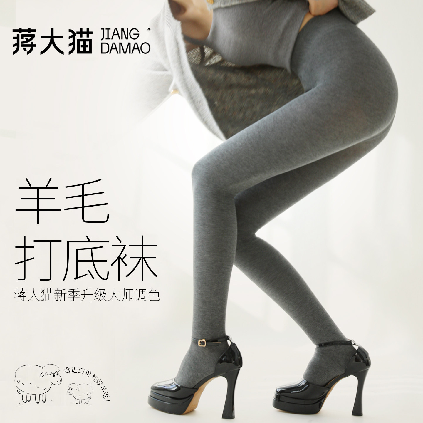 菇娘家热压黑色连裤袜高支棉羊毛打底裤灰色大码女小个子秋冬加厚