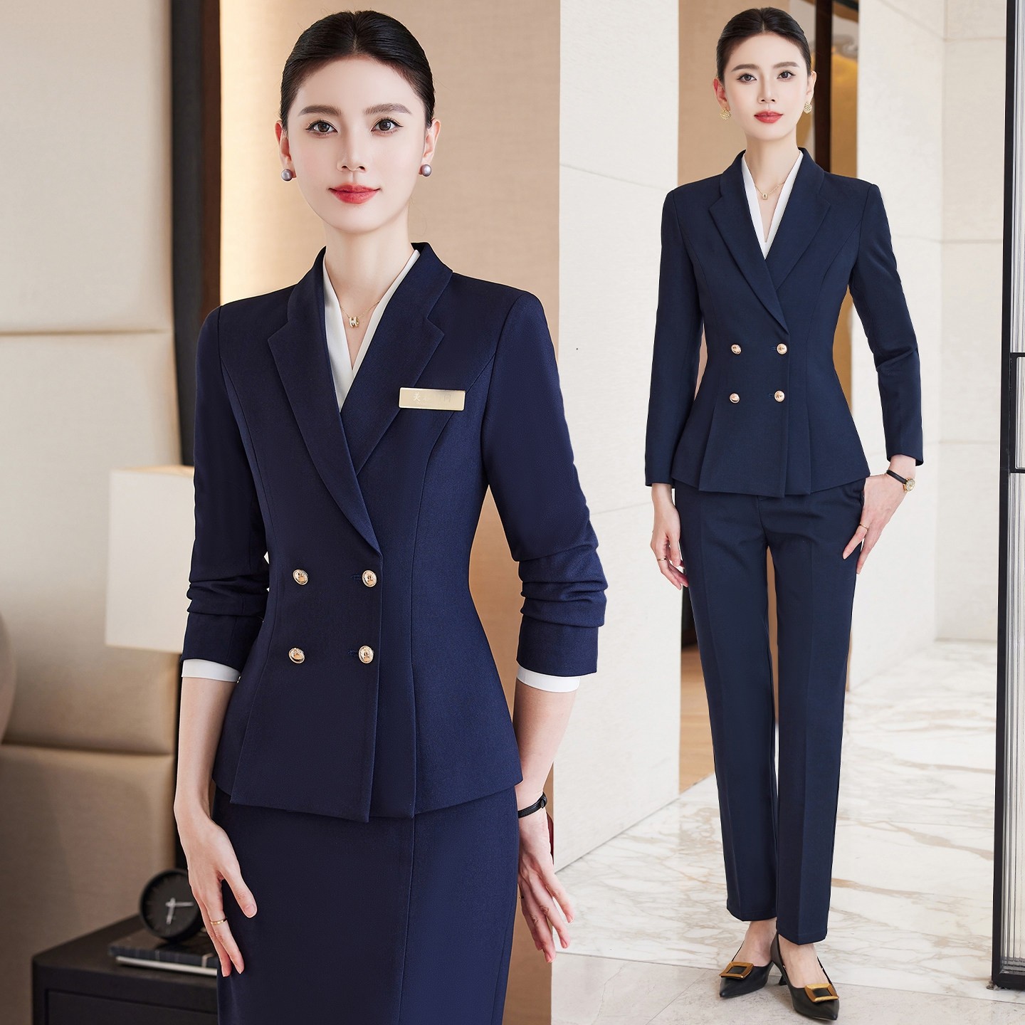 高端空姐职业装女西装套装正装酒店前台服务员美容师售楼工作制服