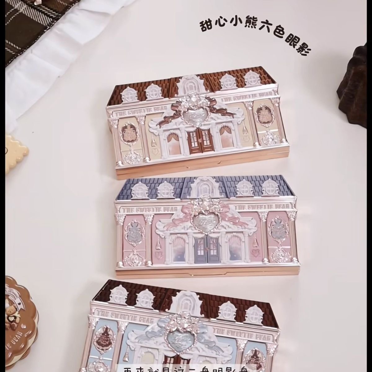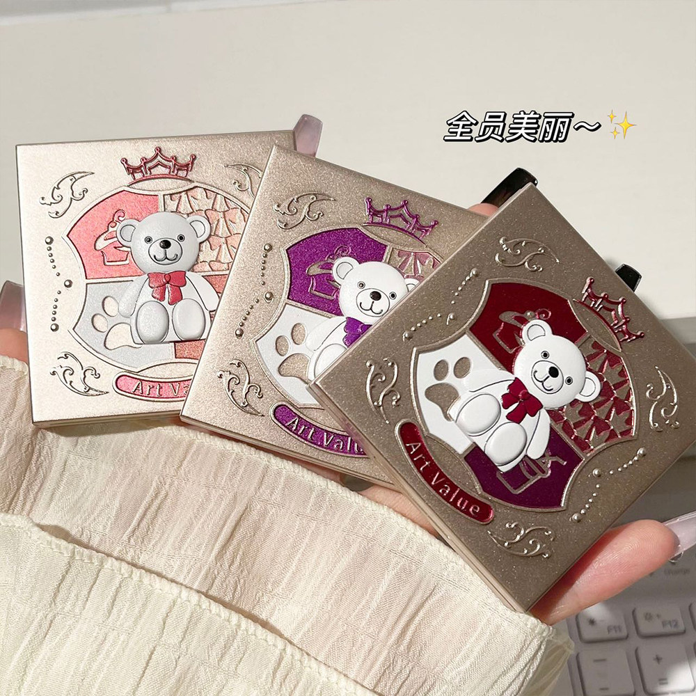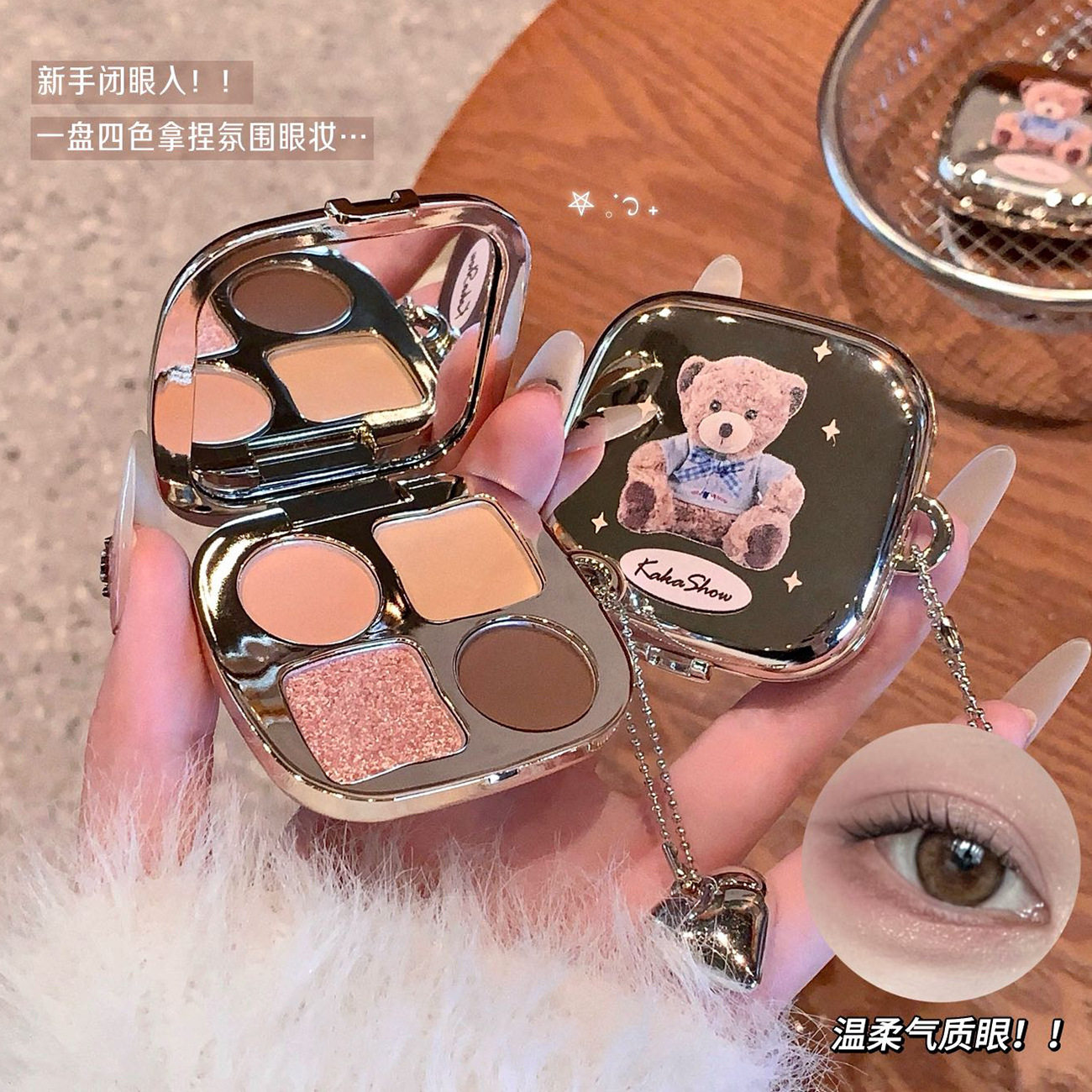 可爱到犯规!光影小熊爱心挂件四色眼影盘卧蚕爆闪盘低饱和大地色