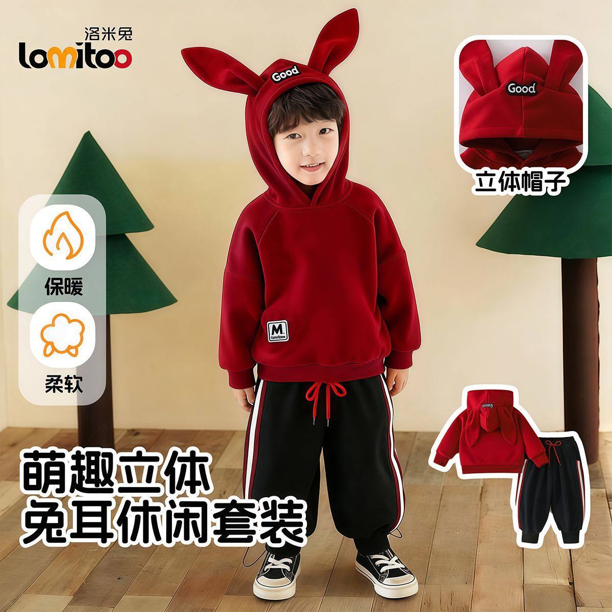 【新年圣诞】洛米兔童装男女童卫衣套装连帽兔耳朵卫衣卫裤两件套