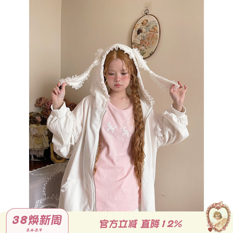 Labeau-芭蕾兔-原创少女兔耳朵蕾丝花边连帽卫衣外套女春秋新款