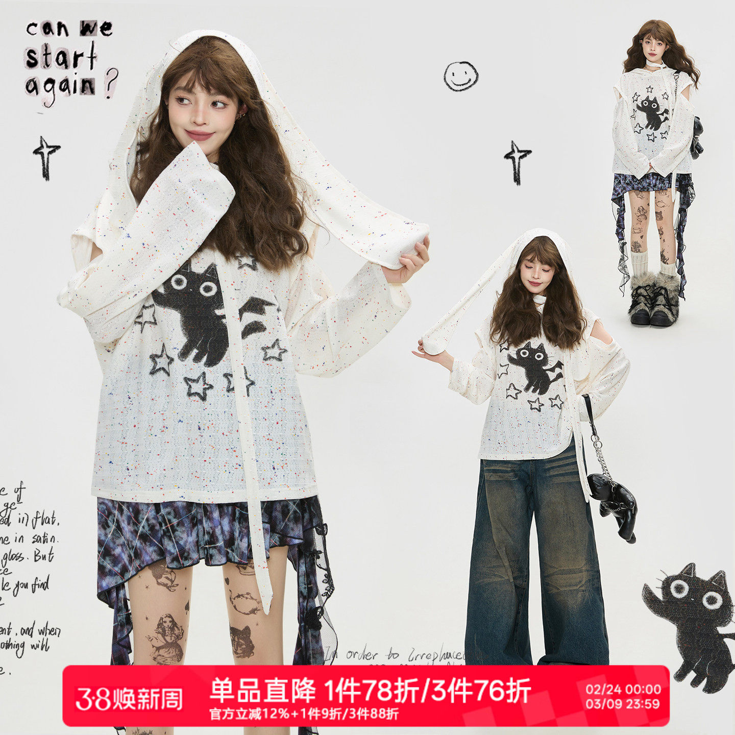 TUDOU土豆猫甜酷穿搭兔耳朵扎染镂空连帽开衫卫衣外套女日系可爱