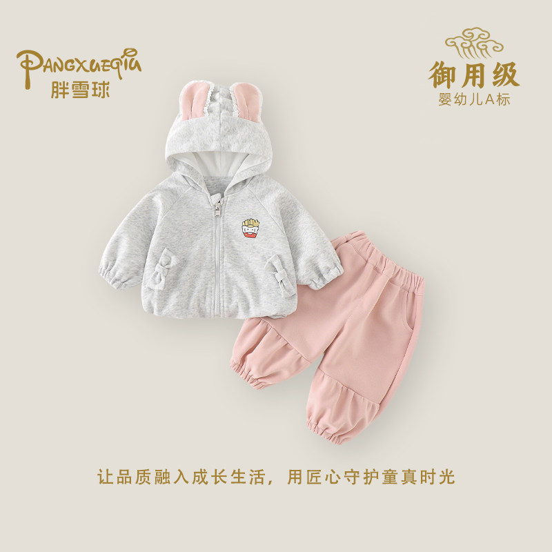 婴幼儿可爱兔耳朵连帽卫衣套装春季女宝宝时尚洋气两件套2026新款