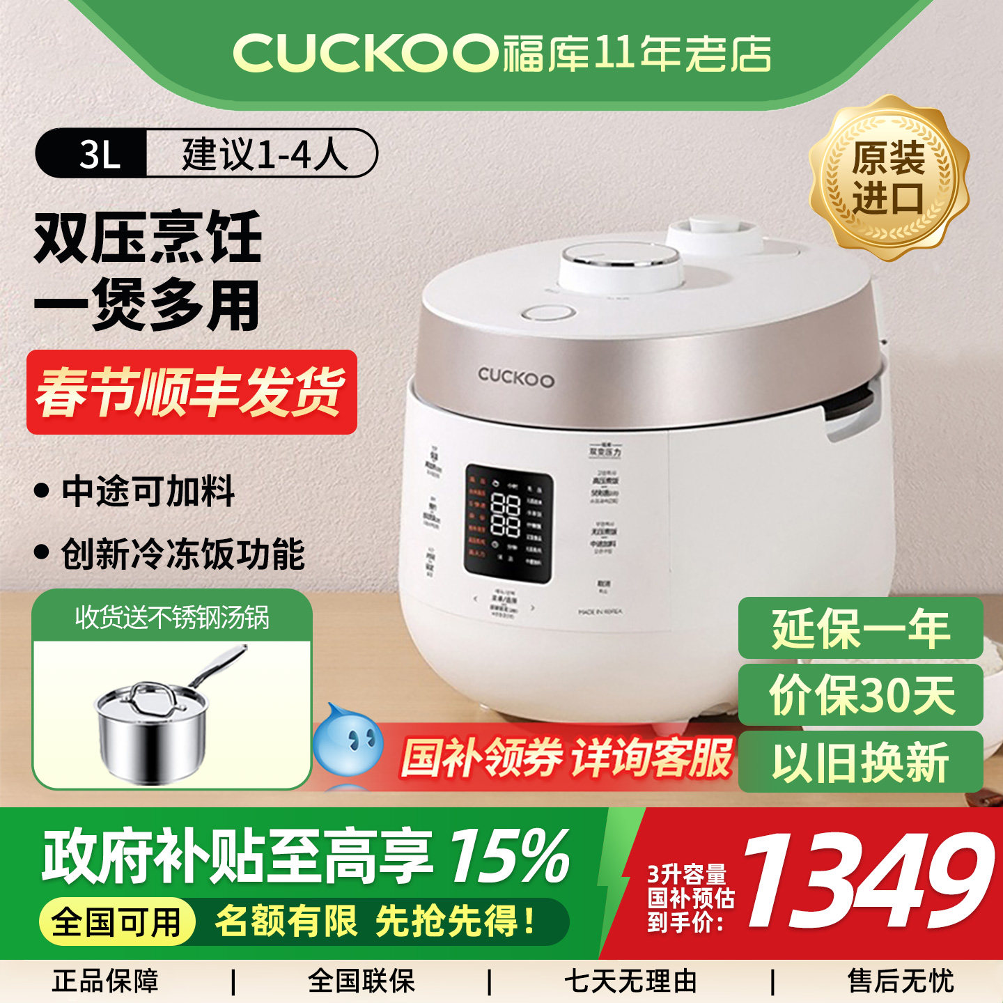【国补】CUCKOO福库进口双压家用多功能电饭煲ST0611FW/ST1011FW