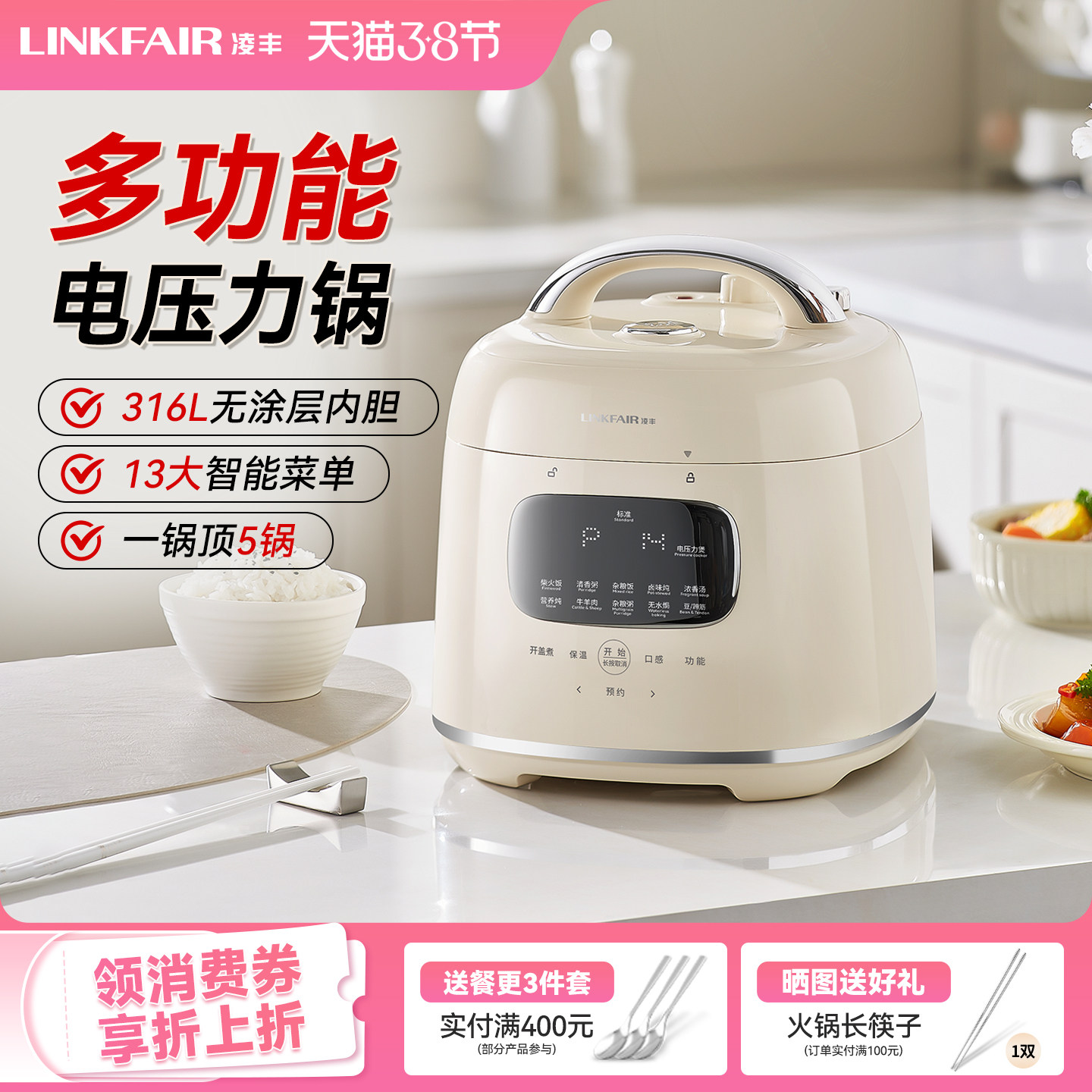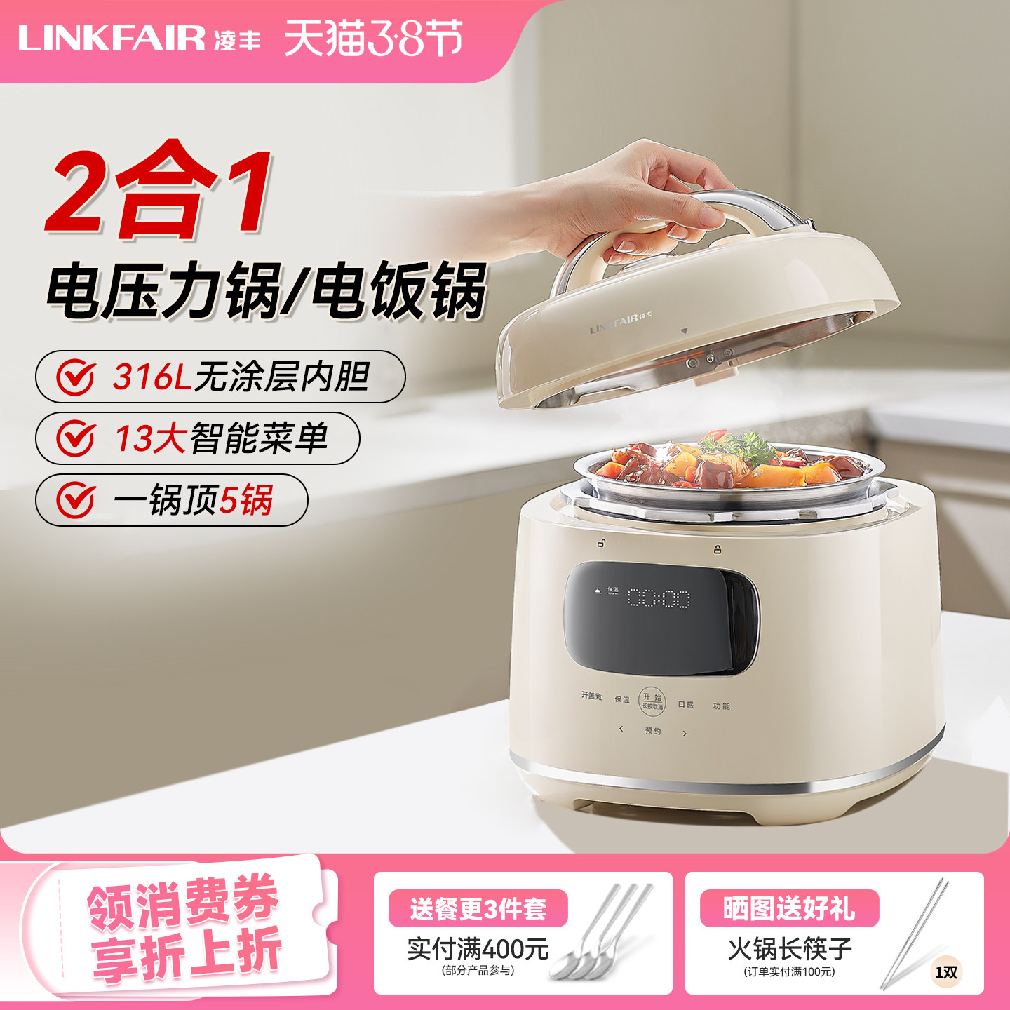 凌丰电压力锅家用高压锅多功能电饭煲小型迷你电饭锅压力锅二合一