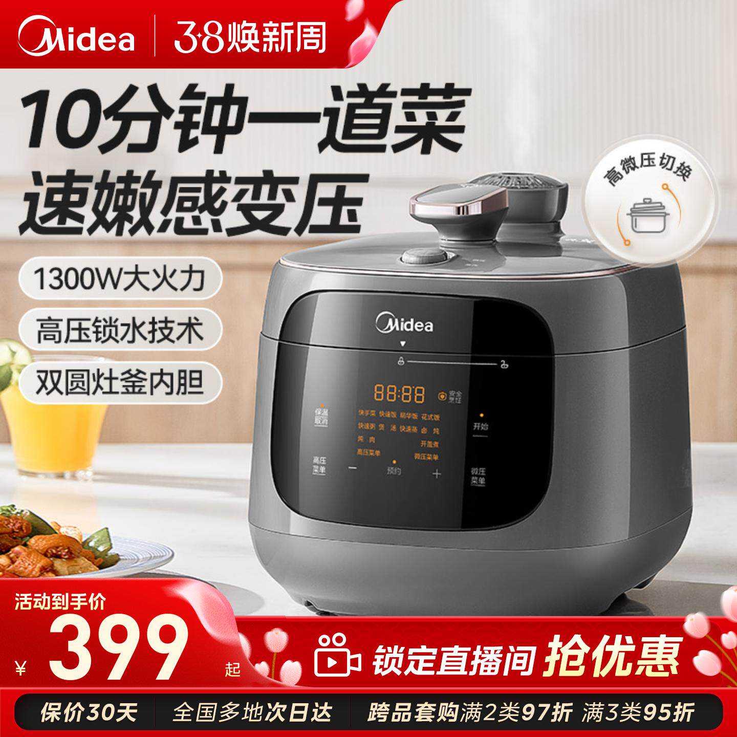 美的速嫩感电压力锅家用双胆电高压锅多功能电饭煲压力锅旗舰正品