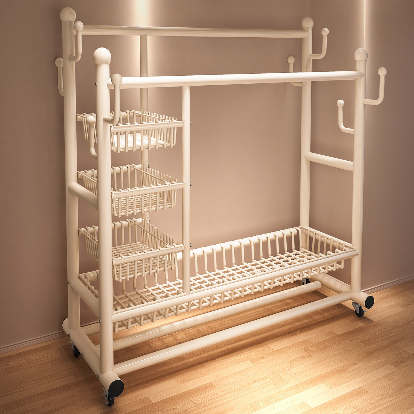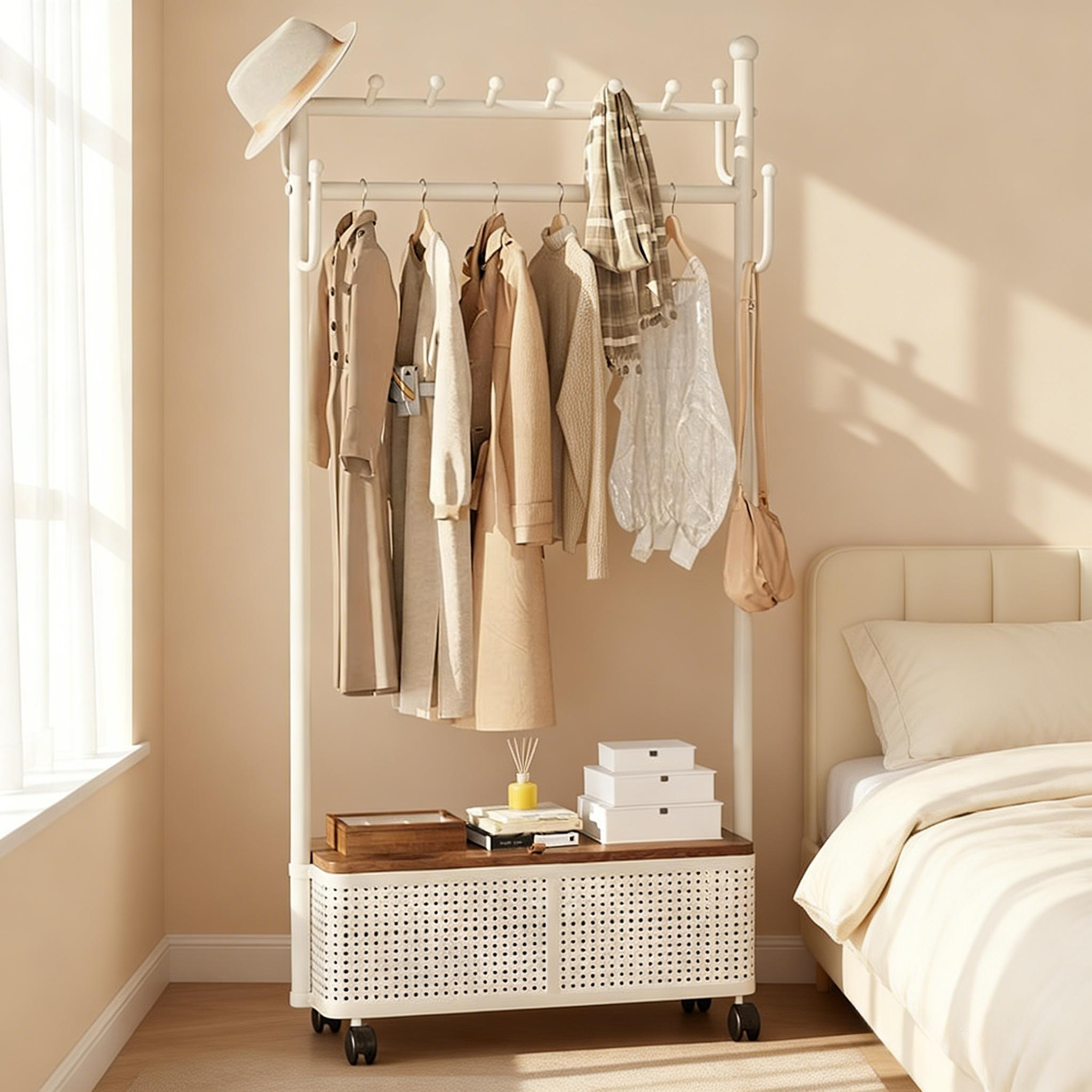衣架落地卧室衣帽架家用奶油风可移动宿舍晾衣架多功能简易挂衣架