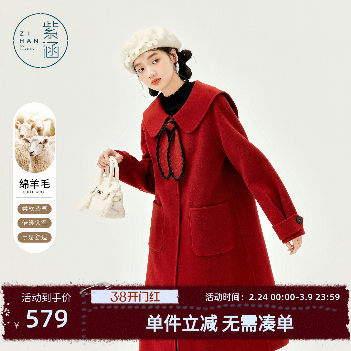 - 羊毛呢大衣红色