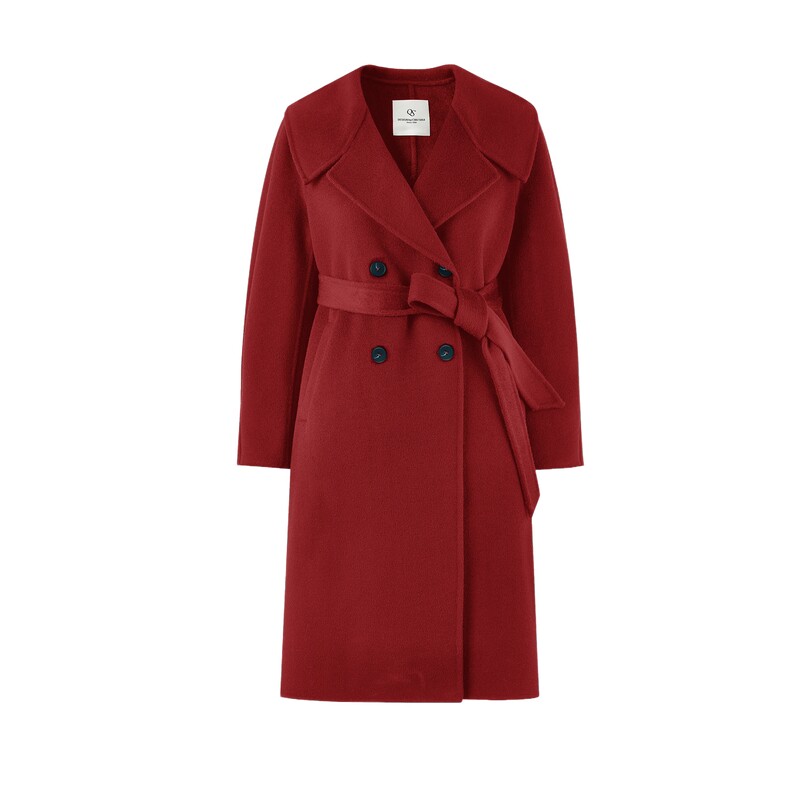 - 红色羊绒大衣女长款