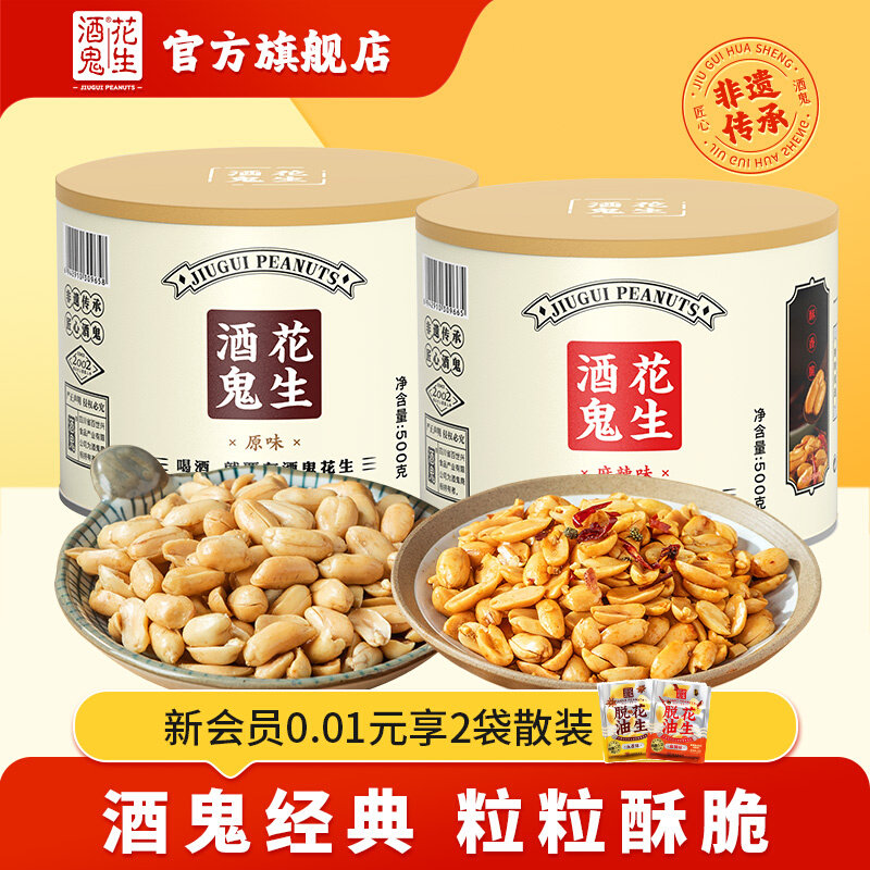 酒鬼花生500g罐装原味麻辣花生米下酒菜坚果小吃休闲零食炒货新货
