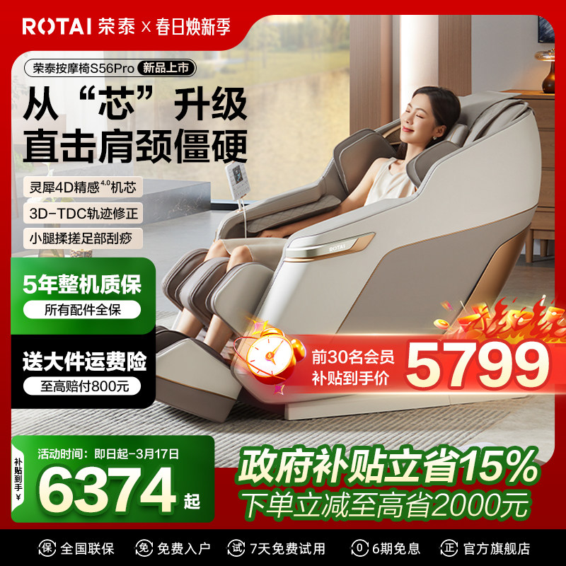 【政府补贴】荣泰按摩椅S56PRO全自动智能电动按摩椅家用太空舱