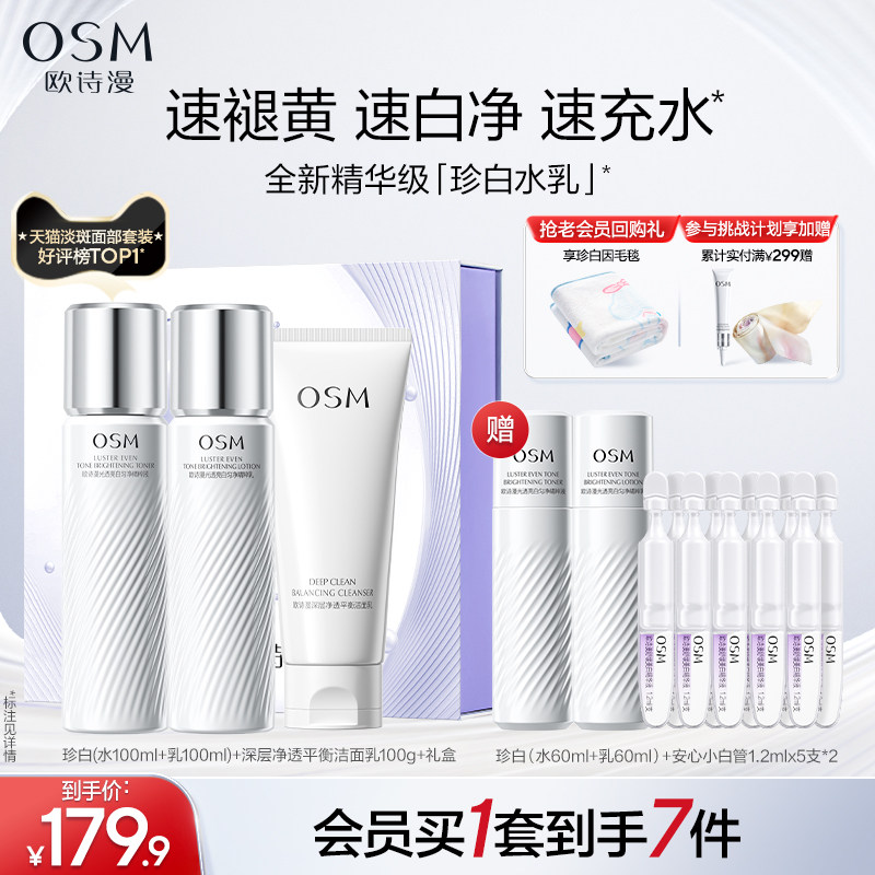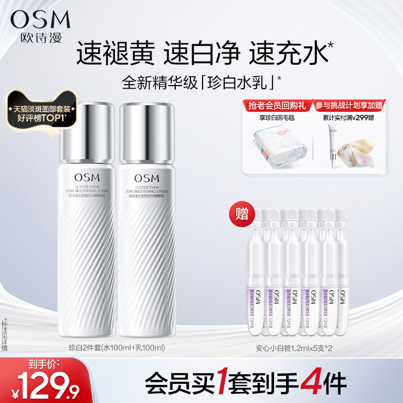 欧诗漫官方旗舰店正品水乳套装美白淡斑护肤品补水化妆品全套妈妈