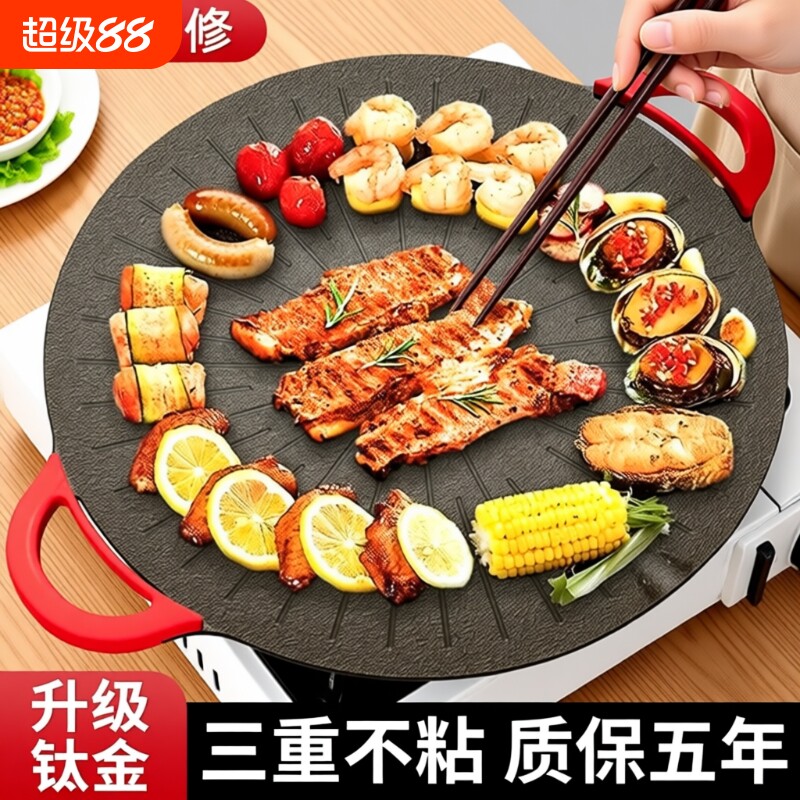 烤肉盘电烤炉家用圆形电烧烤炉烤肉锅电烤盘无烟不粘锅室内一体机