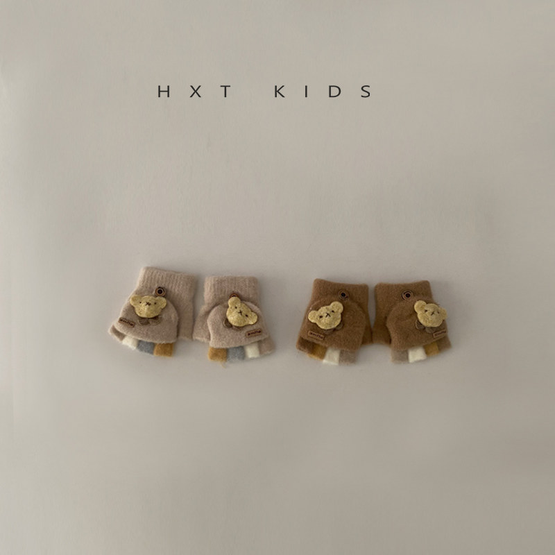 婴儿手套冬季半指翻盖保暖超萌可爱小熊0-3岁小童宝宝户外手袜冬2