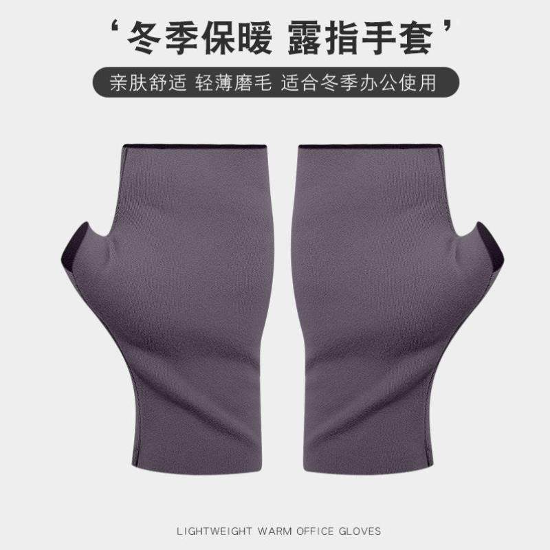 半指手套男士冬天保暖加绒加厚针织毛线露指学生写字骑行秋冬季男