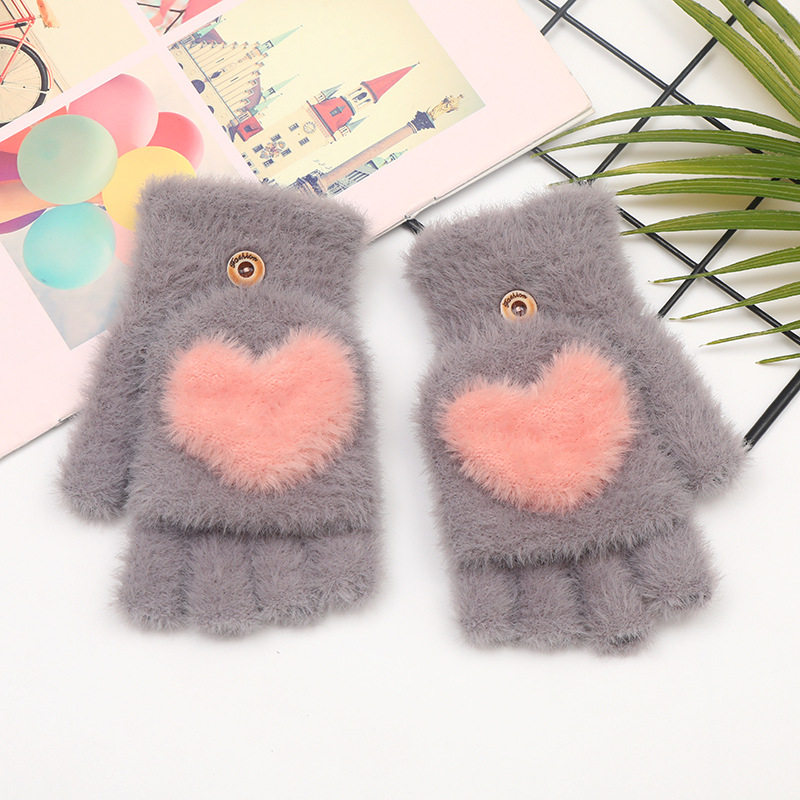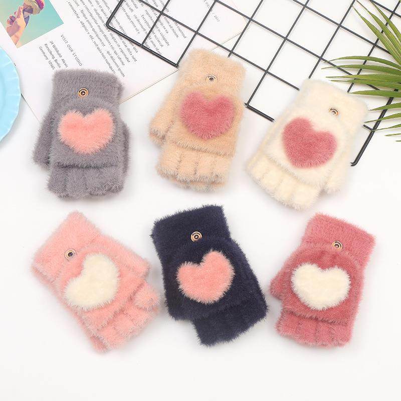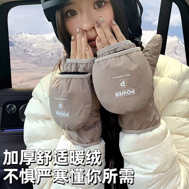 2025新款毛绒半指翻盖冬季手套女写字玩手机可爱保暖户外骑行手套