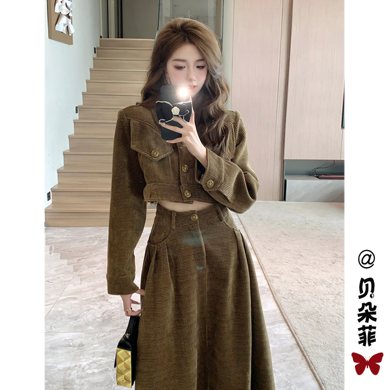 2025年秋季新款时尚减龄职业套装女设计感小众西装外套半身裙套装