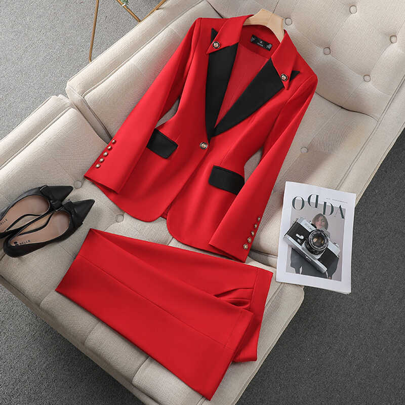 秋季新款大码安可拉红西装套装女装高级感职业修身西服长裤两件套