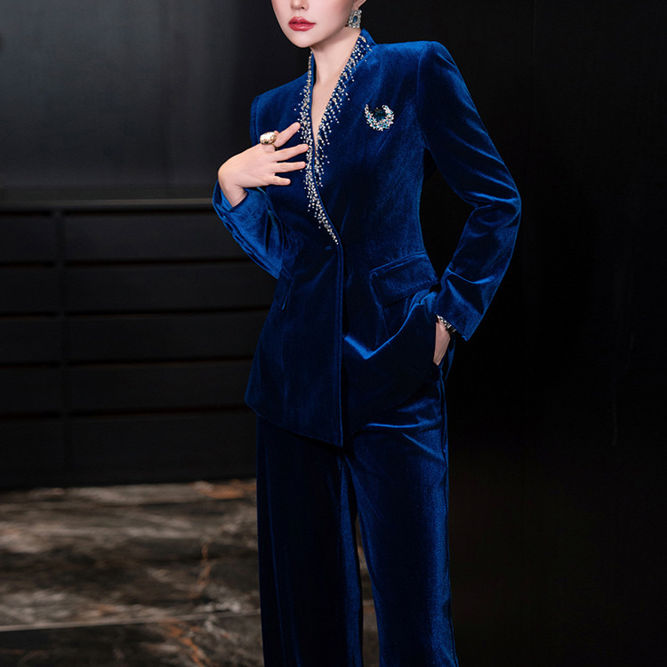 菲梦伊钉珠金丝绒套装女装秋季新款垂坠感通勤职业西装长裤两件套