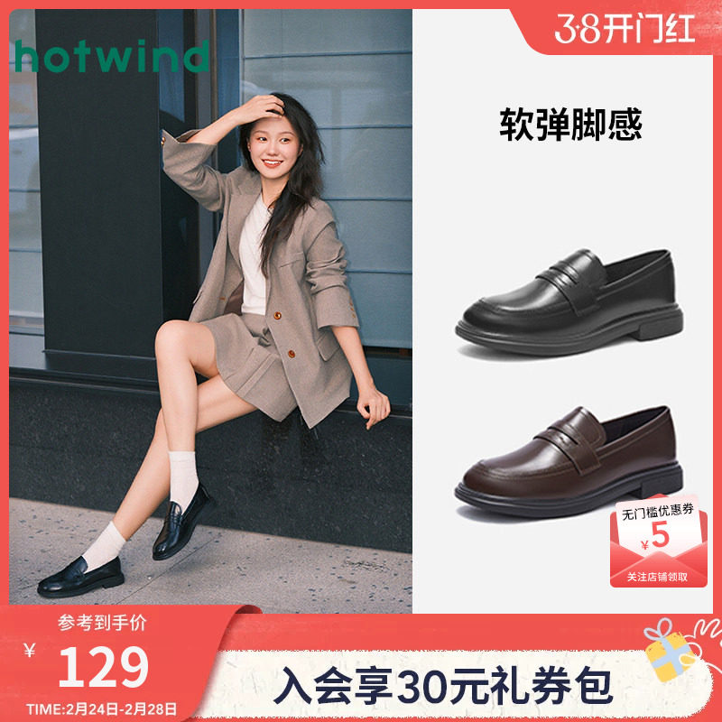 热风乐福鞋26春季新款时尚一脚蹬单鞋学院风简约复古英伦小皮鞋女