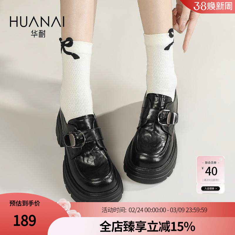 华耐厚底乐福鞋英伦风复古2026春季日系jk学院风懒人黑色小皮鞋子