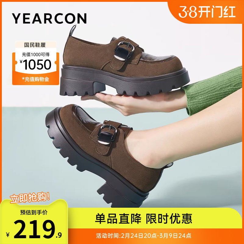 意尔康女鞋2025新款粗跟复古单鞋英伦学院风乐福鞋高跟厚底配裙子