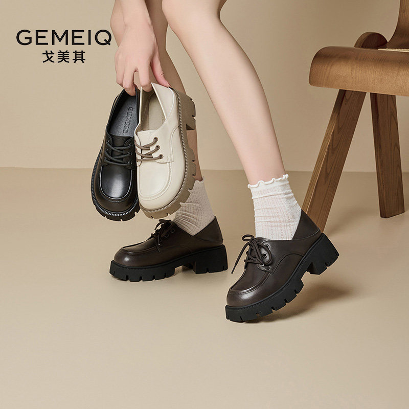 戈美其厚底百搭英伦学院风春秋季复古jk乐福单鞋大头系带小皮鞋女