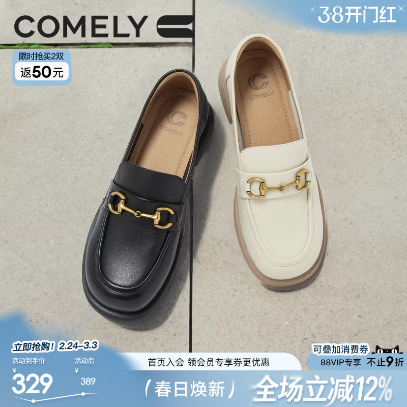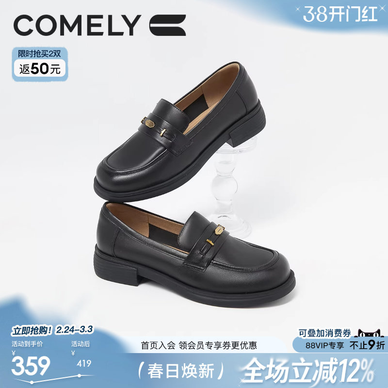 康奈女鞋2025秋季新品真皮软底英伦学院风小皮鞋复古乐福鞋妈妈鞋