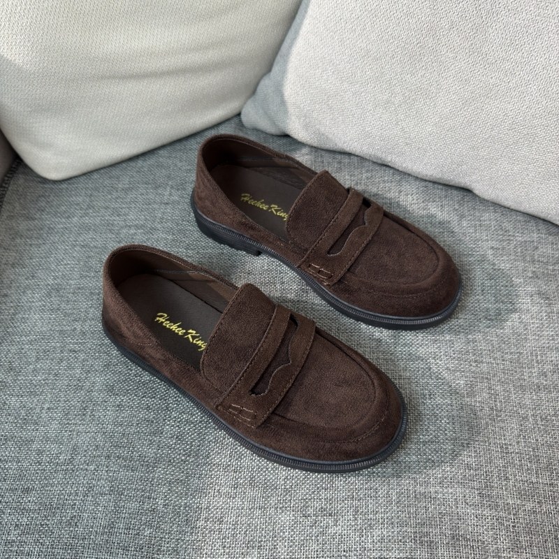 学院风~真皮小金币乐福鞋女英伦风复古软皮小皮鞋粗跟一脚蹬单鞋