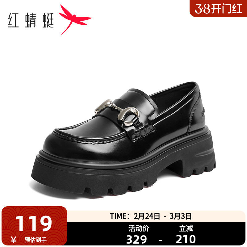 红蜻蜓厚底乐福鞋女2025春季新款单鞋女鞋复古英伦学院风JK小皮鞋