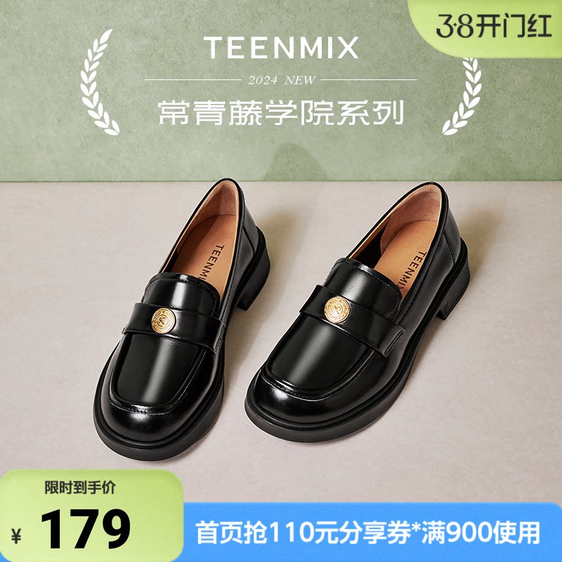 天美意秋新款复古百搭小皮鞋英伦风女学院乐福鞋COY19CA4
