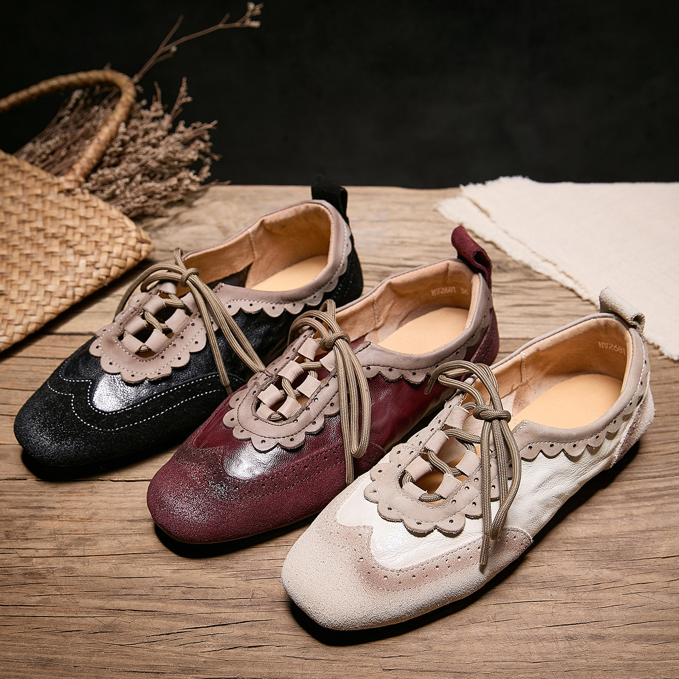 ED08051 茉莉雅集 英伦学院风水洗马皮山茶花复古小皮鞋乐福鞋