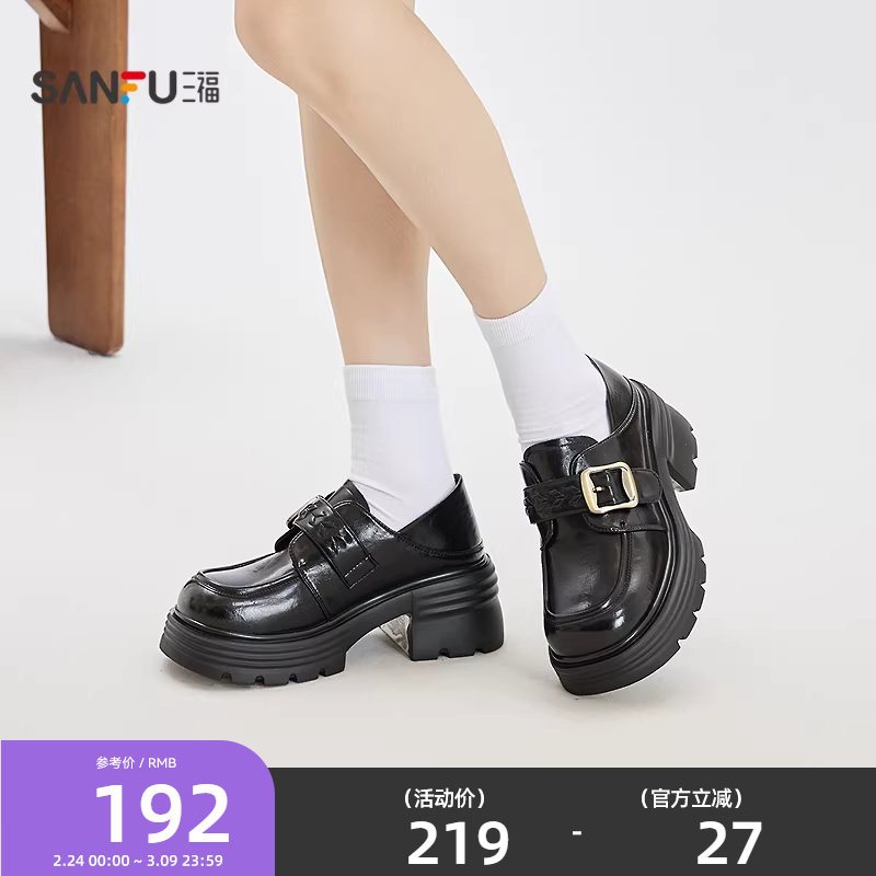 三福女乐福鞋春季失序学院穿花绳复古英伦风厚底女鞋850772