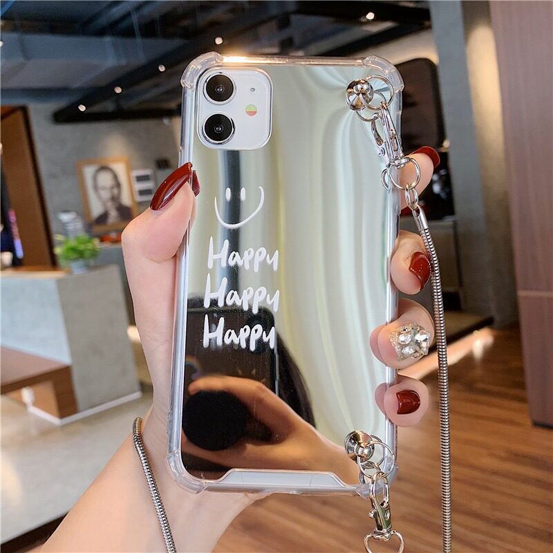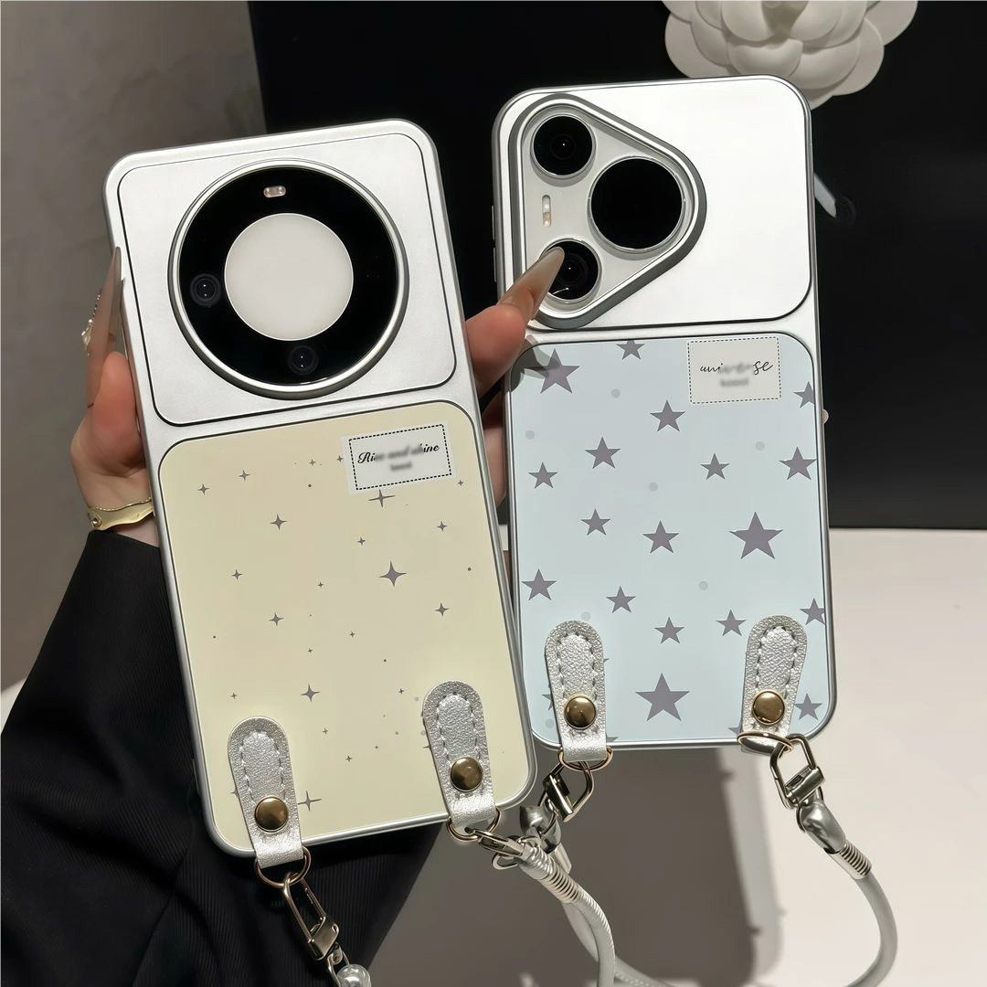 笑脸镜面p50/p60华为mate40手机壳nova11荣耀80/70斜挎vivox90挂绳opporeno9适用小米13红米k60三星s23一加11