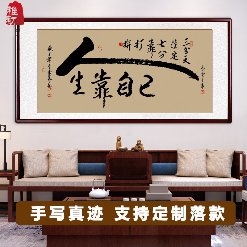 人生靠自己字画真迹手写办公室书法挂画客厅装饰画书法定制毛笔字
