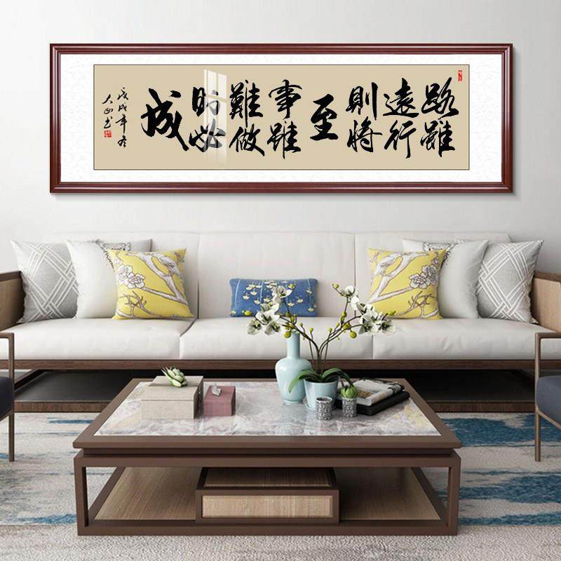 装饰字画真迹手写书法作品办公室中式定制客厅挂画路虽远带框实木