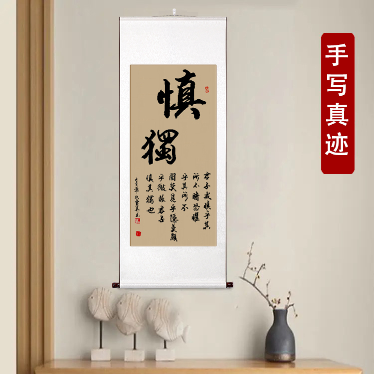 慎独字画真迹手写书法作品老板办公室书法挂画励志茶室客厅装饰画