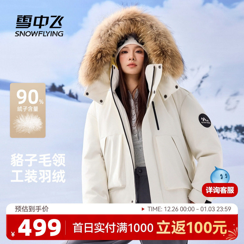 【红书爆款】雪中飞冰雪系列25冬新男女貉子毛羽绒服厚工装滑雪