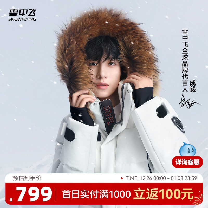 【成毅剧组同款】雪中飞冰雪高充绒男女情侣长款羽绒服貉子毛厚S