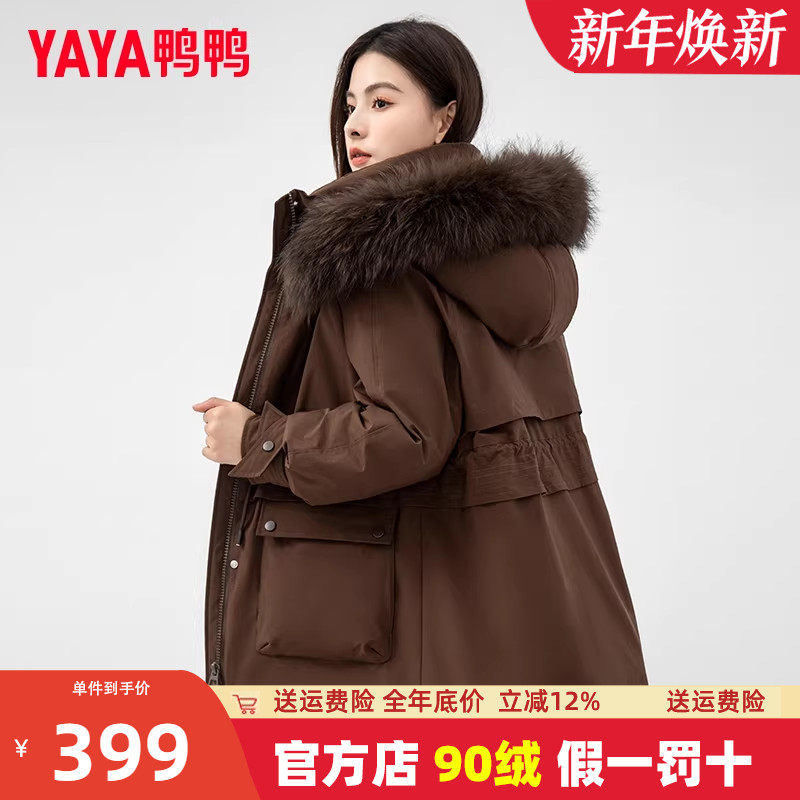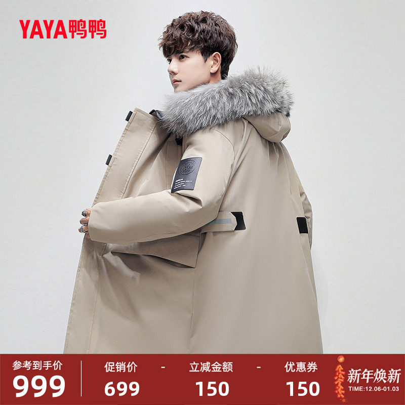 鸭鸭羽绒服男士2025冬季新品中长款貉子毛领时尚潮流加厚保暖外套
